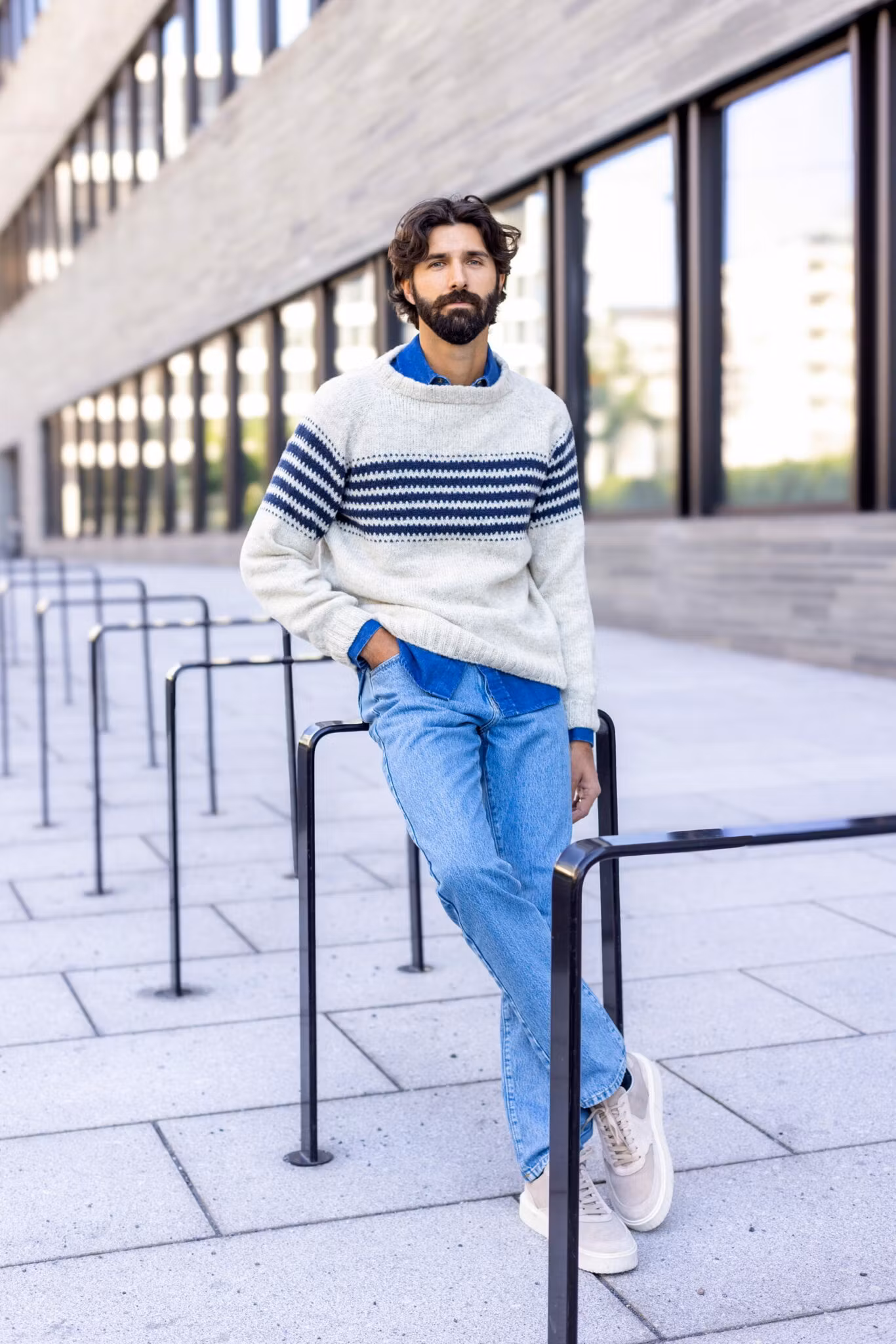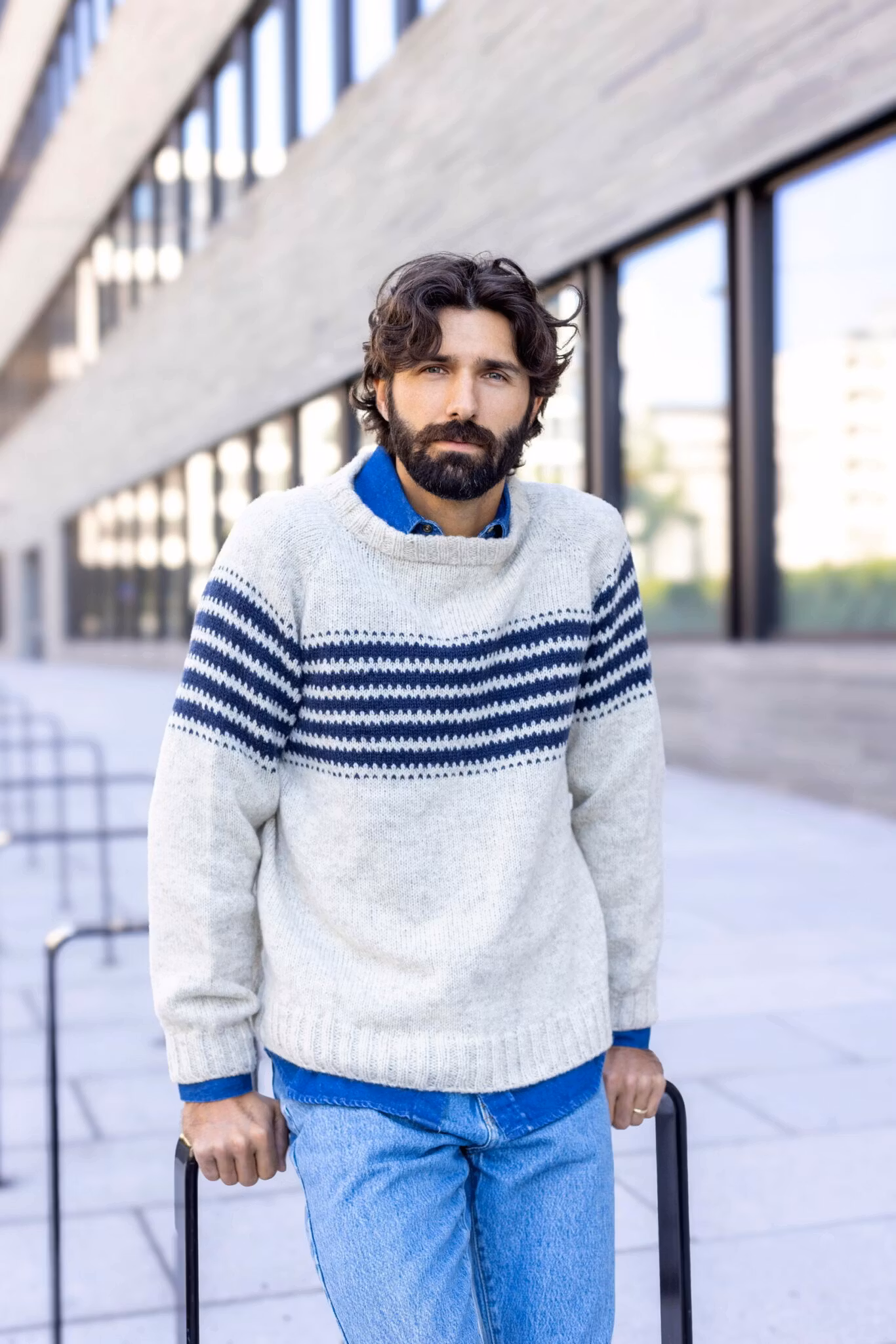 Bjørn stickas uppifrån och ned med ränder på bröstkorgen.